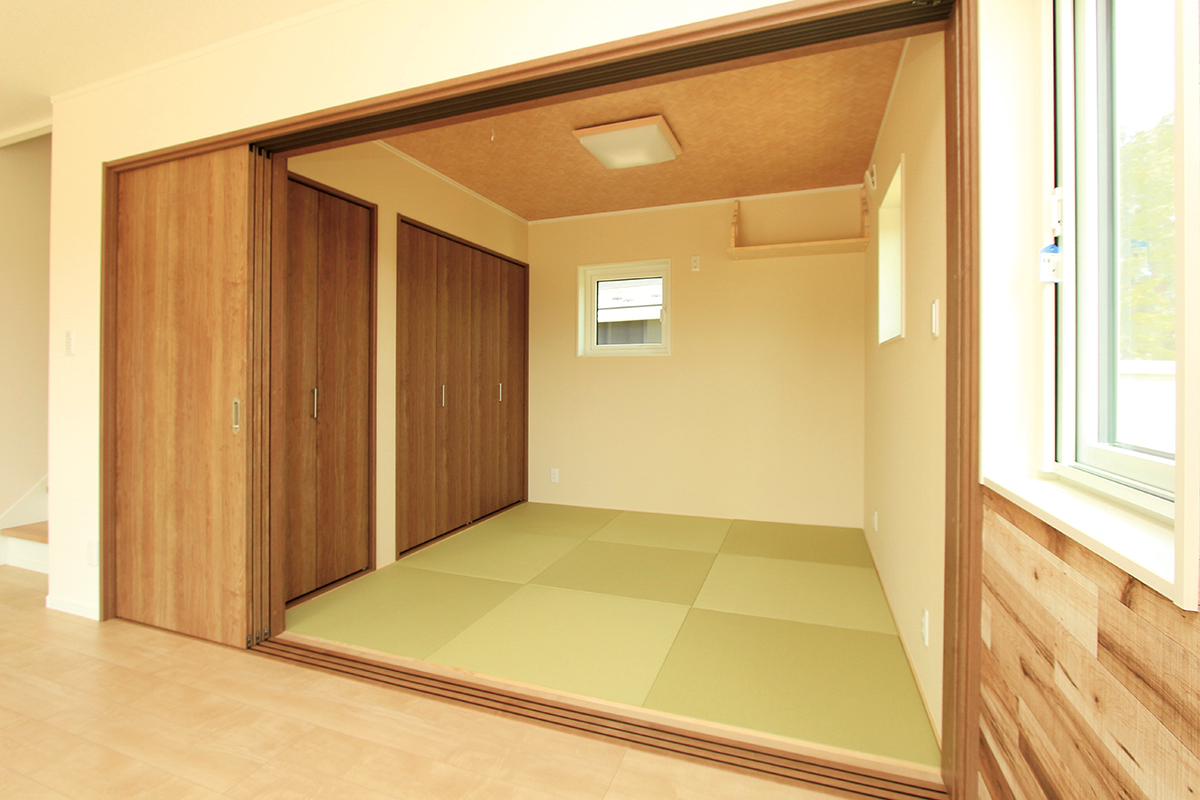 リビングからつづく和室。扉を閉めれば独立した和室になり、子どもを昼寝させるときもリビングから見守れて安心。