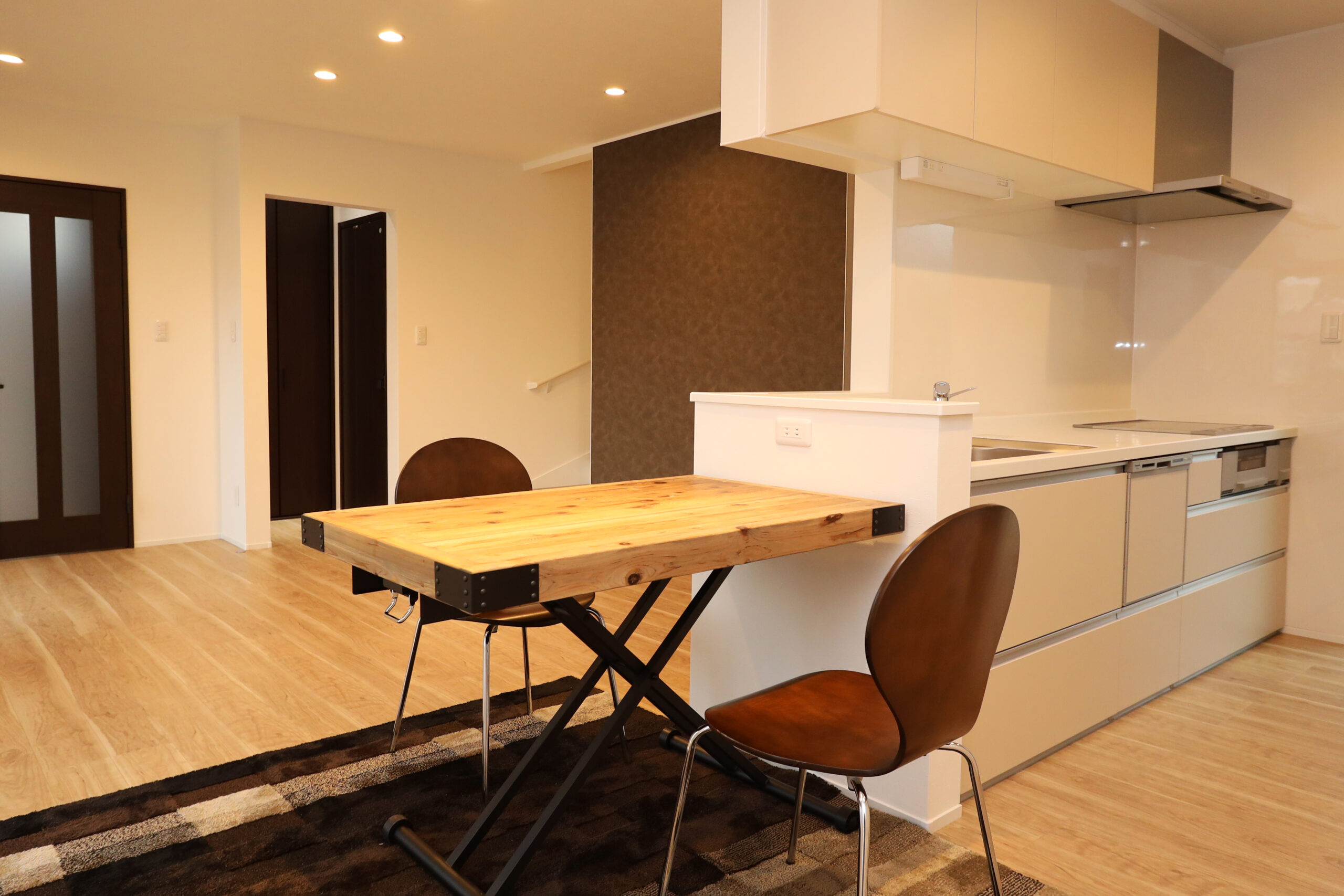 家事動線が短ければ短いほど家事はスムーズで無駄が少なくすみます。収納もたっぷりで、整理整頓もラクラク。ダイニングテーブル上に配置したコンセントもスマホ・タブレットの充電や卓上コンロなどを使用する際とても便利です。