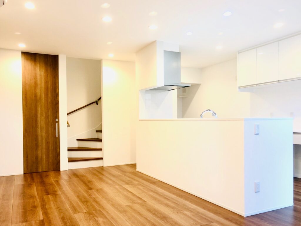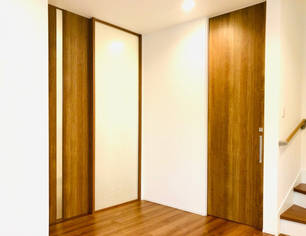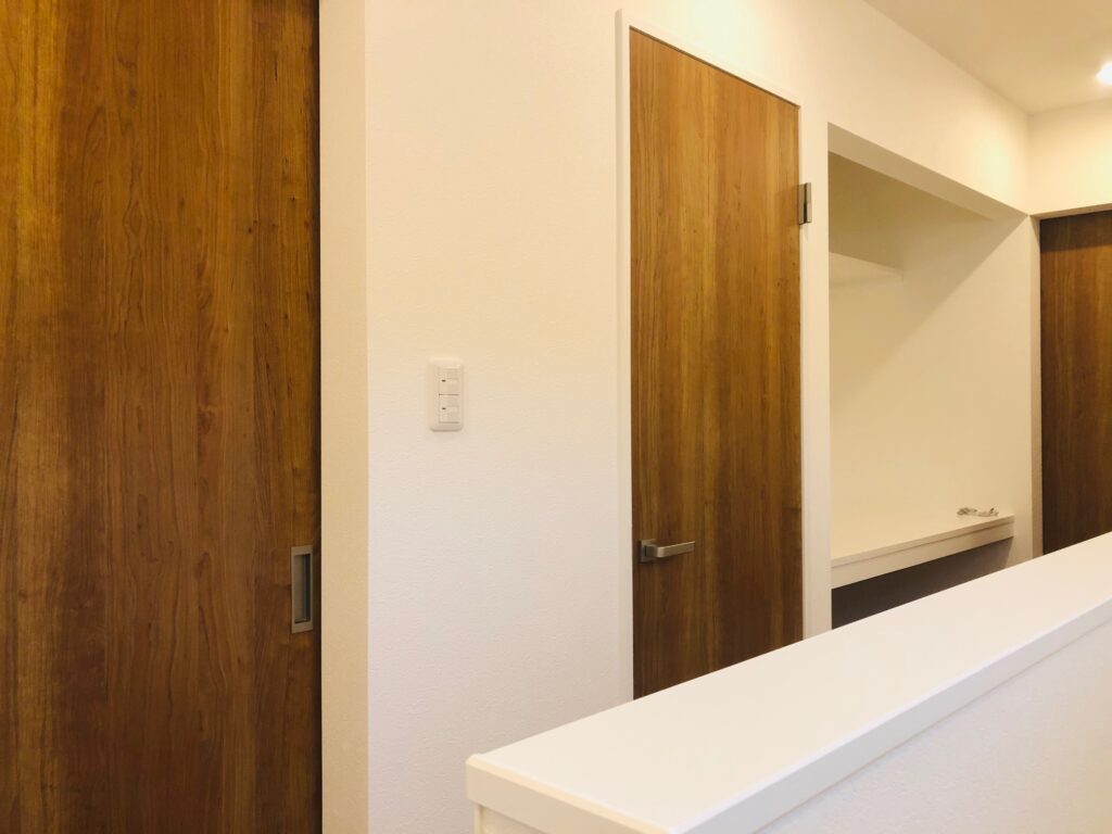 床色と建具を同色にした事で照明や家具が映え、高級感のある雰囲気になっています。