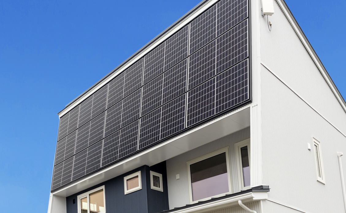 積雪があっても発電可能な雪国仕様の壁面太陽光パネルを使用しています。