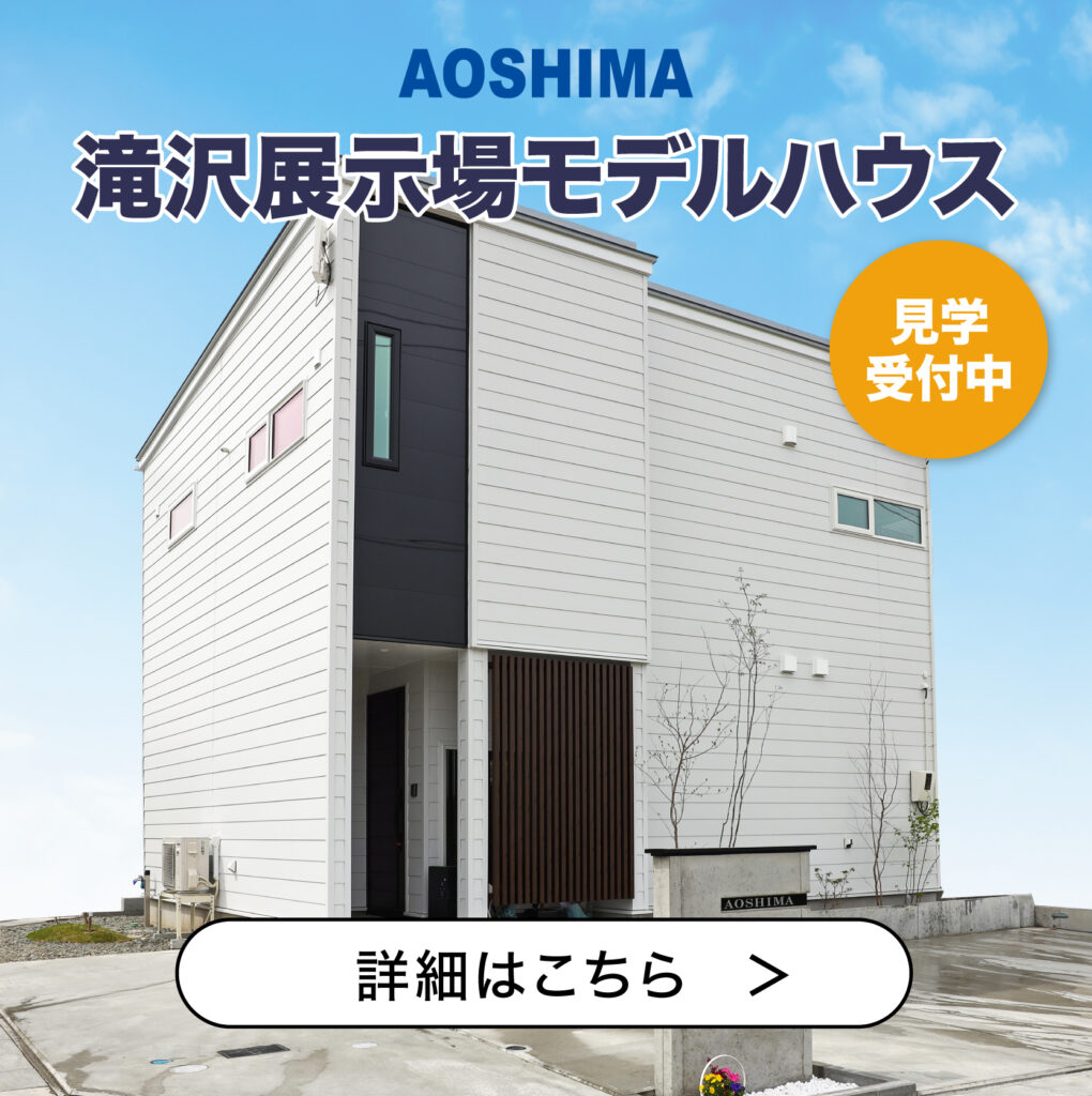 AOSHIMAの最大のおすすめポイントは、高性能住宅であることです。高気密高断熱パネル「ジョイパネル」を採用し、1階リビングルームから2階への吹き抜けスペースにエアコンを設置することで、真夏でも真冬でもエアコン1台で1年中快適な室温を保つことが可能です。