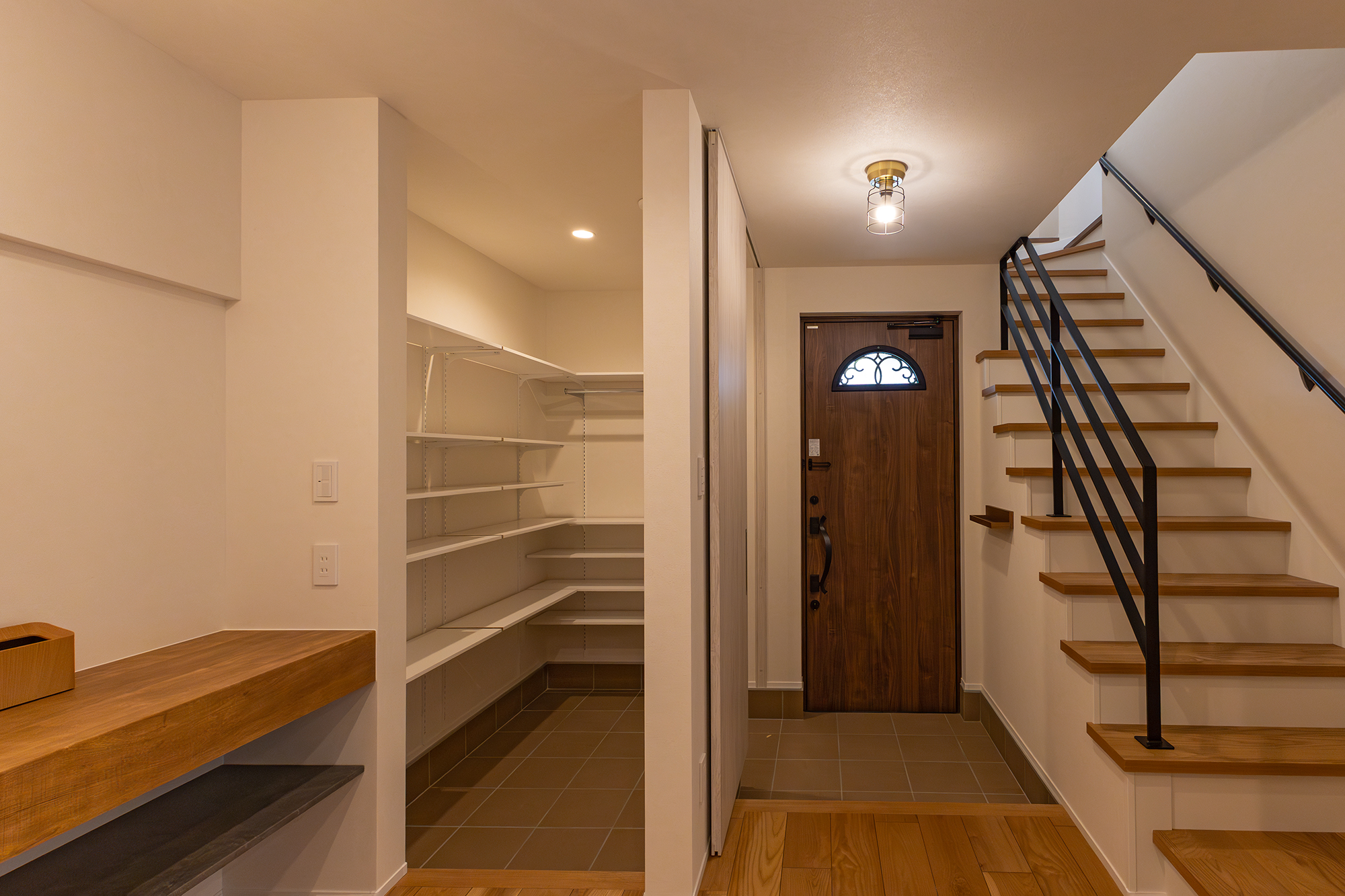 玄関には、靴やアウターなどたっぷり収納できる広めのシューズクローク(土間収納)を設けました。さらに、雨の日でも傘の開封や荷物の出し入れがしやすい余裕のある玄関ポーチにしました。