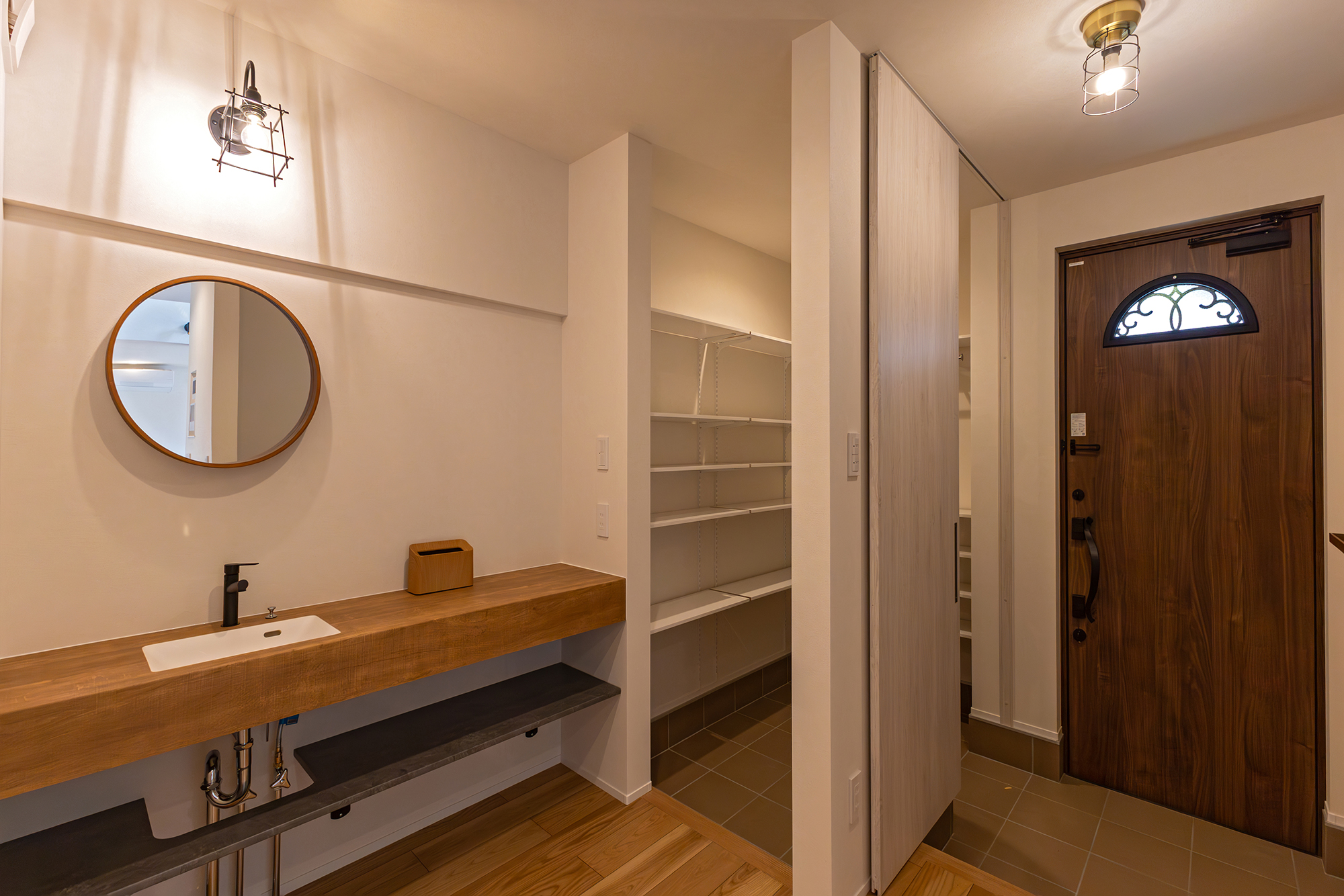 「ただいま」のあとすぐ手洗い。衛生と収納を両立した玄関まわり。